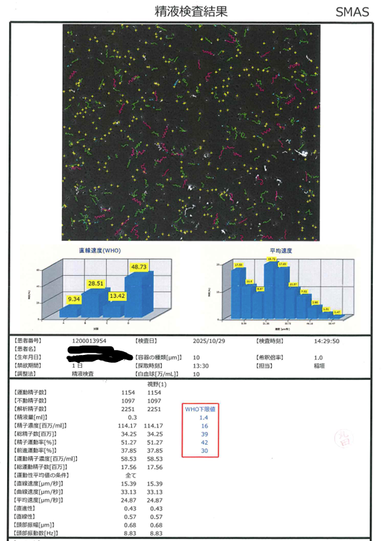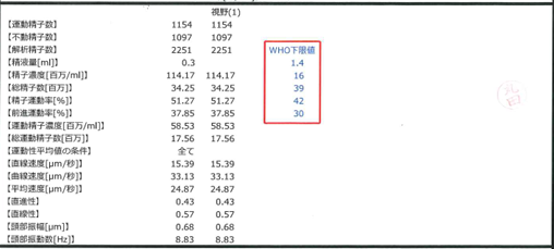 精子運動率はWHO下限値約1.25倍